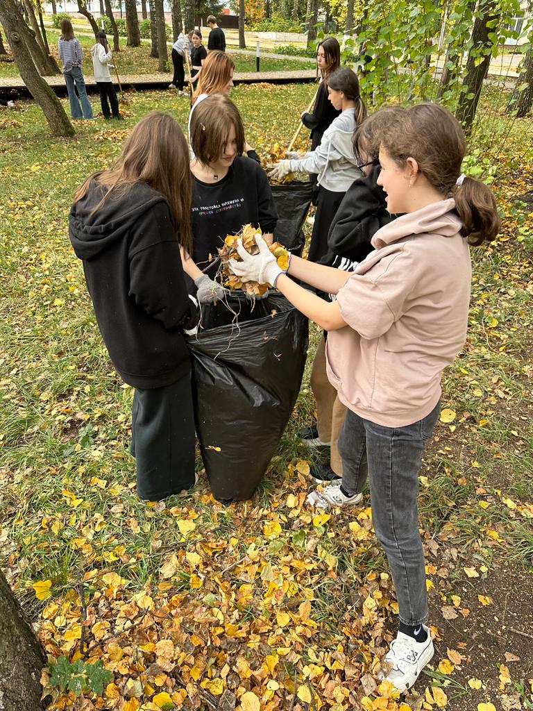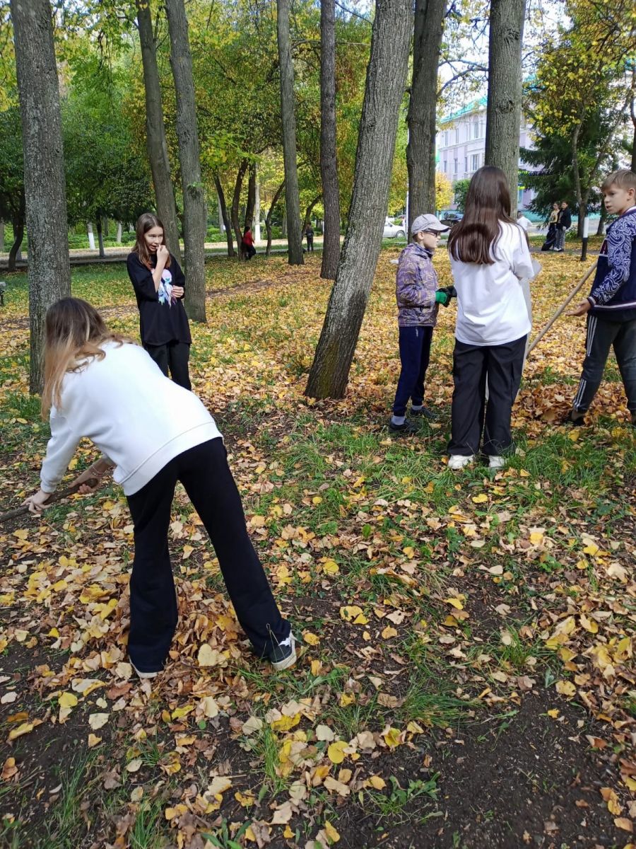 7Б поучаствовали в очистке осеннего сквера от опавших листьев. Каждый внёс свой посильный вклад в общее дело, а заодно весь класс размялся и пообщался в неформальной обстановке. Экологическая акция прошла успешно!