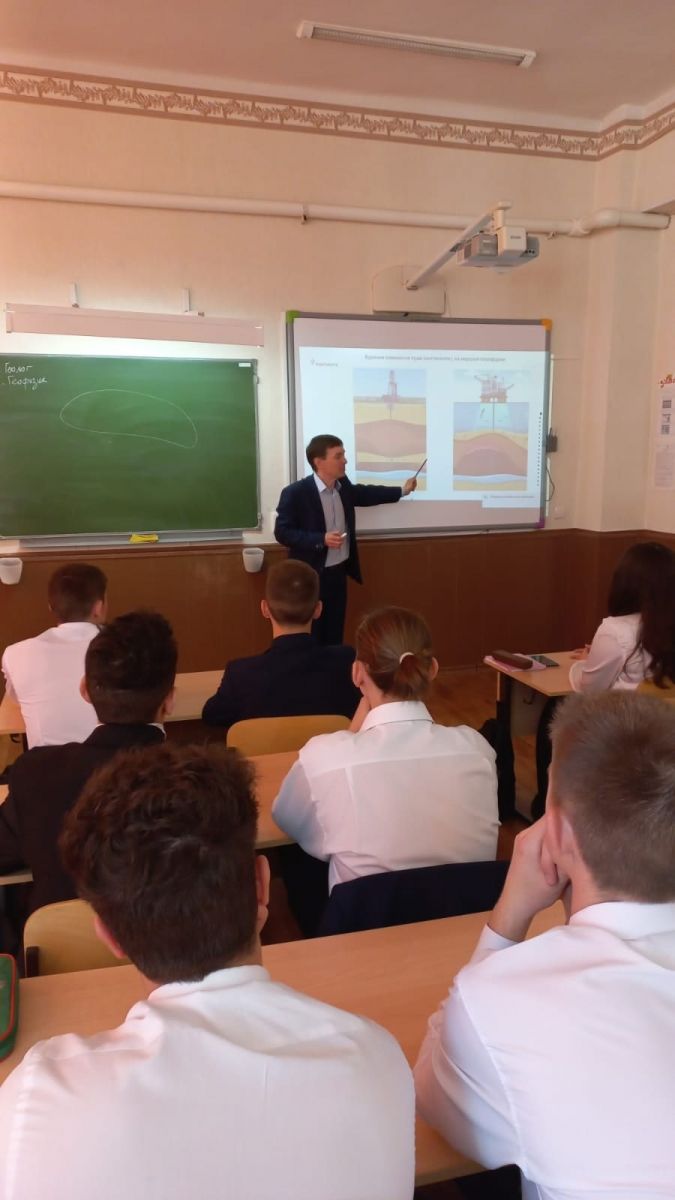 В рамках профориентационной работы 29 апреля состоялась встреча с главным специалистом УДНГ СП "Татнефть-Добыча" Мухутдиновым И.А. 45минут пролетели незаметно. Столько нового,важного и интересного узнали девятиклассники о буднях добытчиков чёрного золота! Кто занимается добычей? Наносит ли вред человек- нефтяник Земле? Хватит ли нефти следующим поколениям?- на эти и другие вопросы получили ответы ребята на встрече.