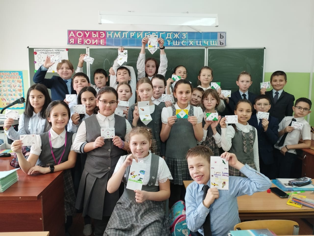 Письма солдатам написали ученики 4 б класса. Поздравили бойцов с наступающим праздником и пожелали скорейшего возвращения.