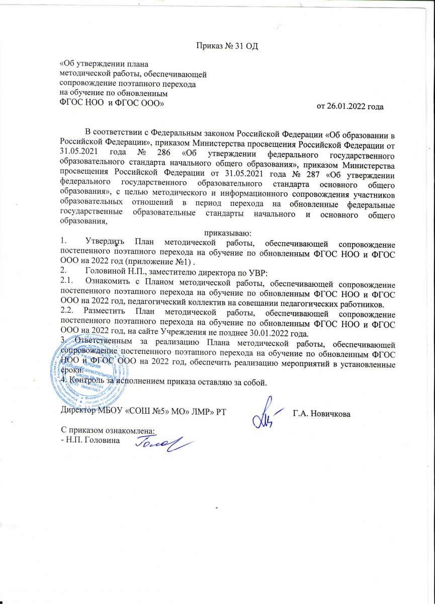 План методической работы, перехода на обучение по обновленным ФГОС НОО,ООО