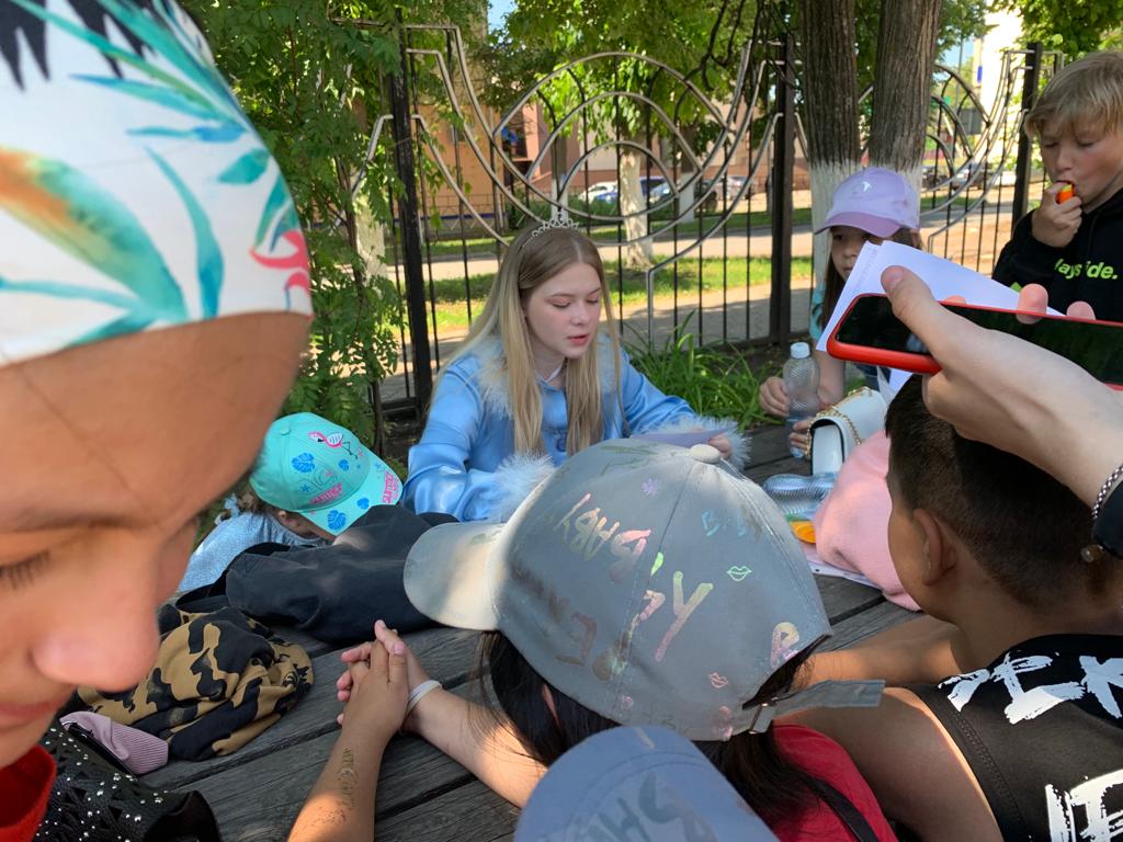 Опубликовано: 02.07.2022Сегодня с утра ребят встретили герои сказок: Малефисента, Снежная королева, Аврора, Кот Базилио, Василиса Премудрая, Жасмин, Фея и Волшебник. Злая Малефисента украла апельсины ребят и отказалась им отдавать! Для того, чтобы получить их, ребятам надо было пройти литературный квест. 1 станция- "Здравствуй сказка. ребята отвечали на вопросы викторины. 2 станция- штаб чудес. Ребята отгадывали загадки у Снежной королевы и за отгаданные загадки ребята получали льдинки на которых были буквы. Льдинки необходимо было составить в правильном порядке и узнать следующую станцию. 3 станция -Чудо - дерево. Ребята играли в игру "Волшебная шляпа и угадывали потерянные волшебные , потерянные сказочными героями. 4 станция - Сказочная мастерская. Вместе с феей ребята лепили из пластилина сказочных героев. И последняя станция- испытание кота Базилио. Ребята с закрытыми глазами проходили эстафету.Пройдя все станции ,ребята нашли украденные апельсины и с удовольствием их съели! Толстова А. и Квашин К. пришли в костюмах и стали победителями в конкурсе "Парад литературных героев"