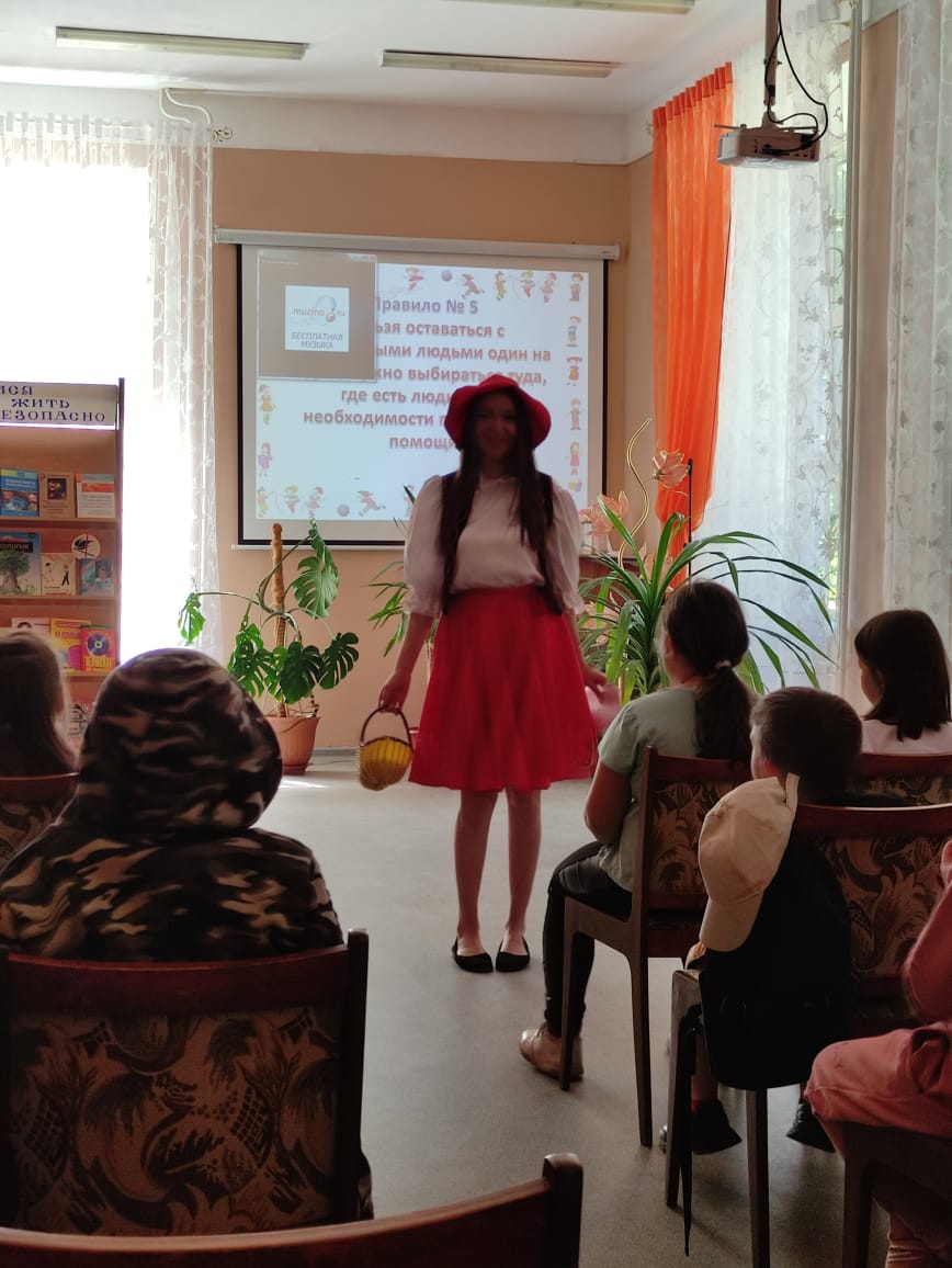 Для ребят была организована экскурсия в Центральную библиотеку на беседу "Уроки Красной шапочки. Игротека ОБЖ", где Красная шапочка и ребята обсудили правила безопасности жизнидеятельности.