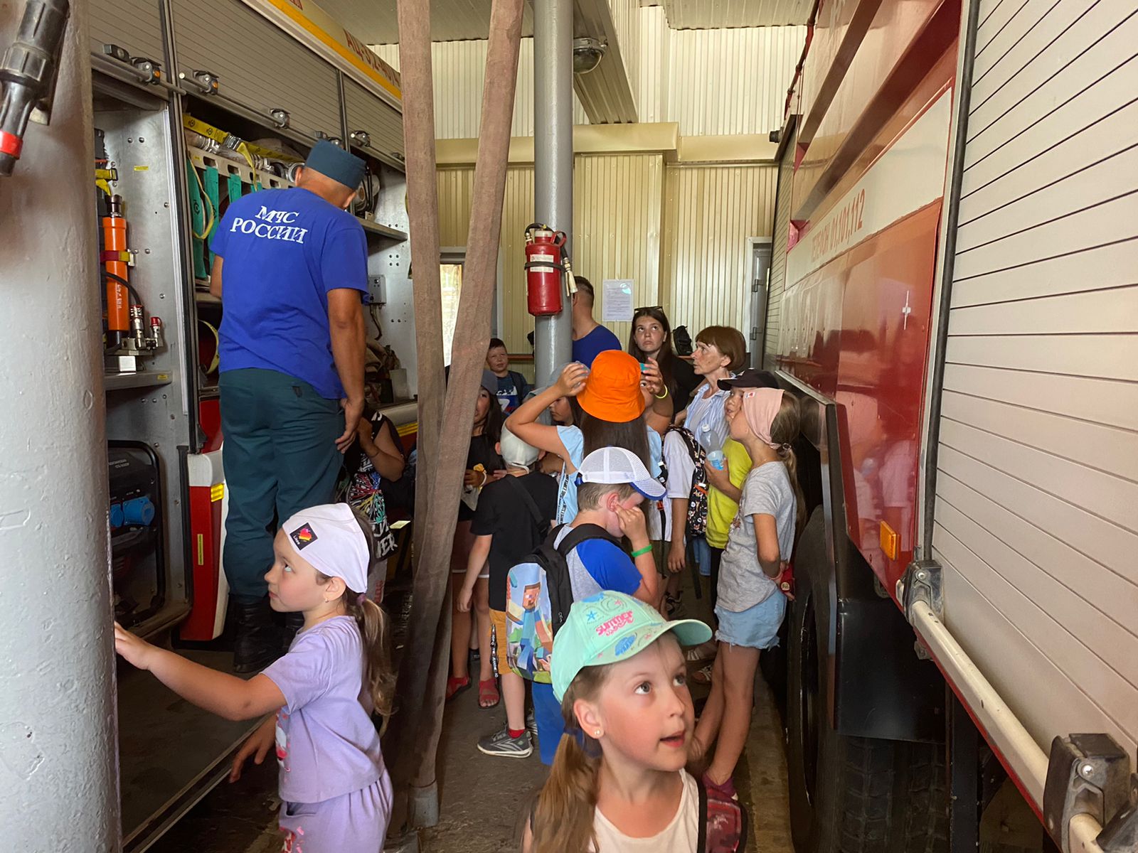 Опубликовано: 13.07.2022Сегодня состоялся конкурс шумовых оркестров "Кто во что горазд" и экскурсия в пожарную часть. В пожарной части ребятам показали здание и технику. Было весело и познавательно. После экскурсии ребята приняли участие в викторине по правилам противопожарной безопасности и в конкурсе рисунков на тему "Пожарная машина".