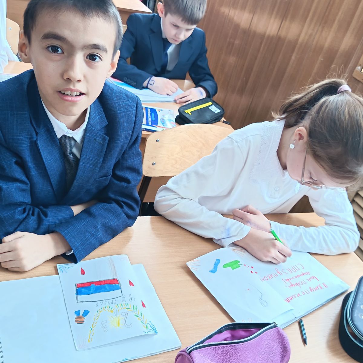 Ученики 4 Б класса создали открытки для военнослужащих, участвующих в специальной военной операции.