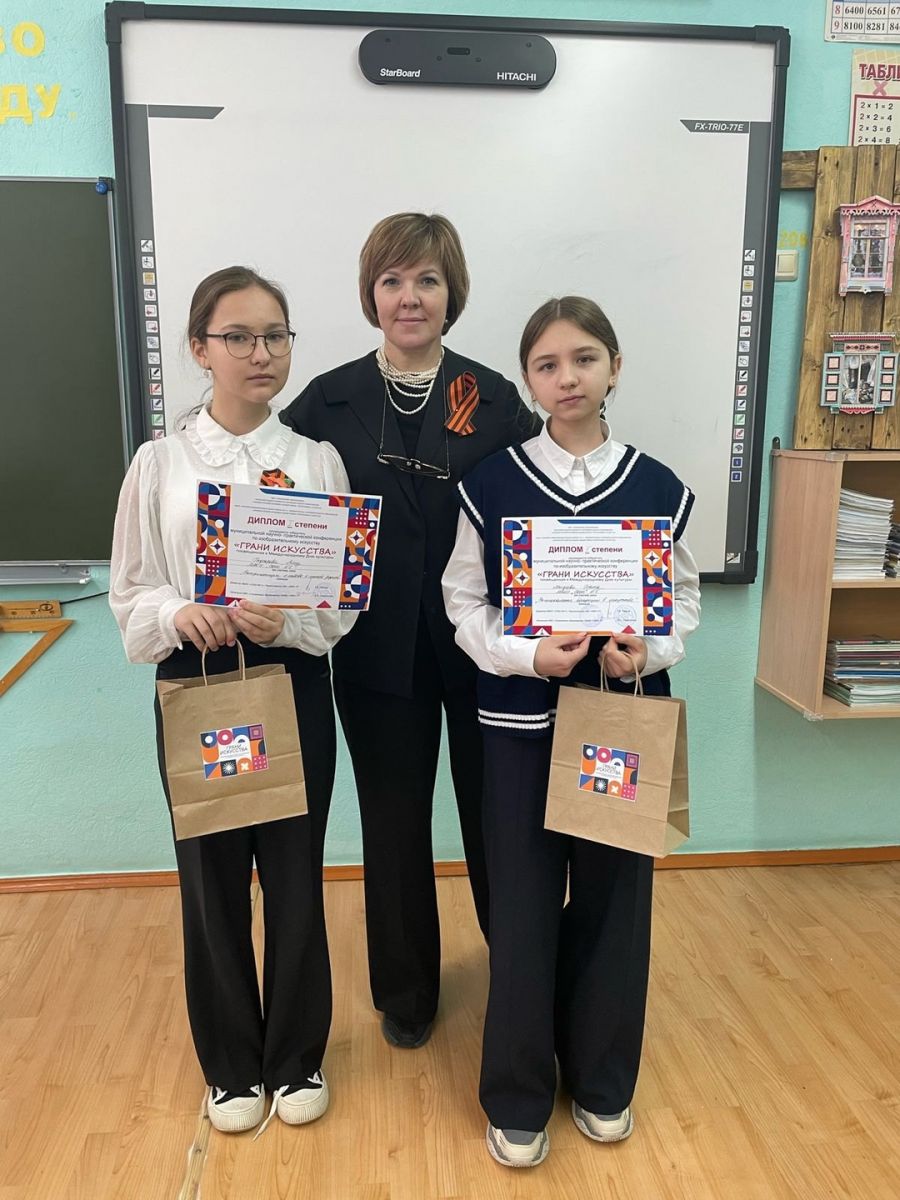 28 апреля на базе 13 школы состоялась муниципальная научно- практическая конференция по изобразительному искусству « Грани искусства» для обучающихся общеобразовательных школ. Ученица 8 б класса Гафарова Алсу награждена дипломом первой степени. Ученица 8a класса Магдеева Риана награждена дипломом второй степени. Руководитель Гаранина М. С.
