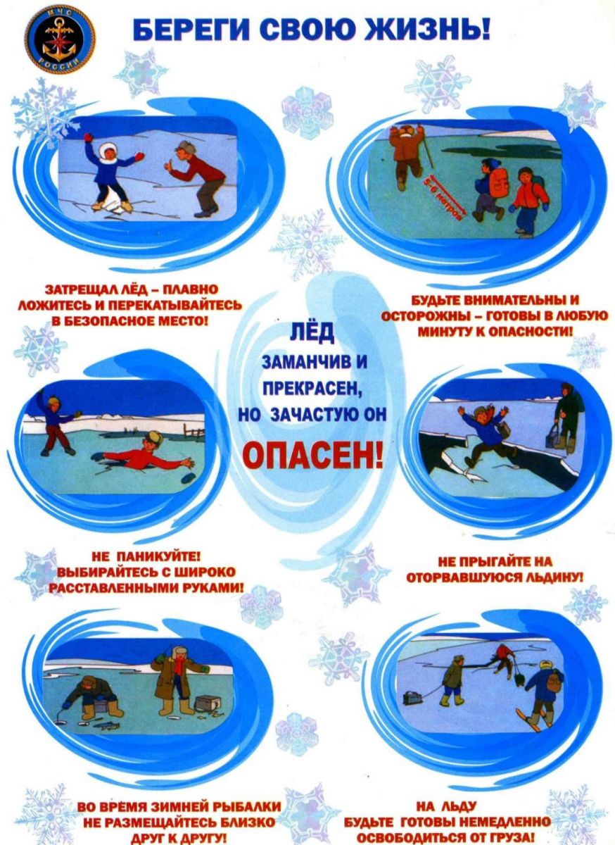 - исключите случаи пребывания на льду в плохую погоду, а также ночью.