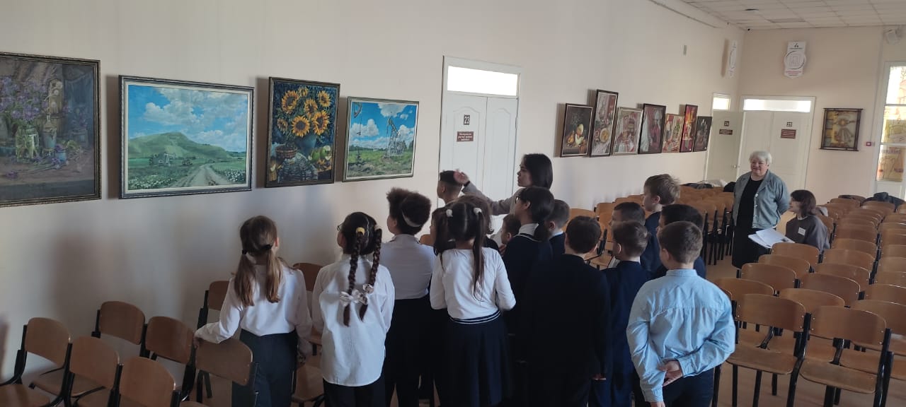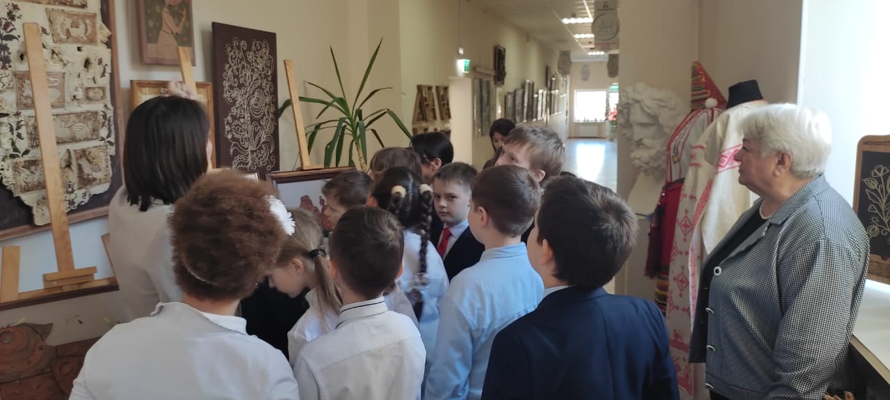 Проводят каникулы с пользой и 3А класс. Они посетили экскурсию в ЛМХПК, где посмотрели выставку картин местных художников и другие работы из различных материалов.