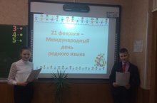 20 февраля в 5 В прошел классный час , посвященный Международному дню родного языка на тему «Языки народов мира». Учащиеся подготовили презентацию, сообщения о языках нашей республики, читали стихи поэтов разных национальностей; познакомились с высказываниями классиков 18-19 веков о родном языке.