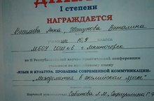 Поздравляем Шешунову Виталину ( 9Б класс), Васильеву Анну (10А класс), обладателей диплома I степени на II Республиканской научно-практической конференции по английскому языку «Язык и культура. Проблема современной коммуникации», учителя Сабитова Л.М., Сафиуллина Г.Ф.