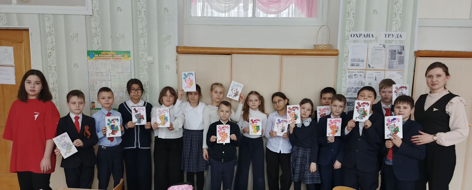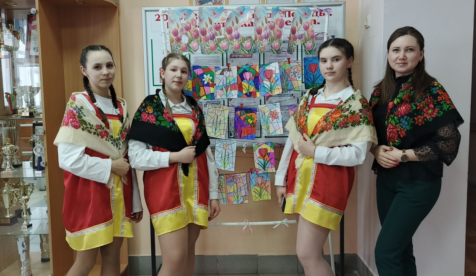 В честь яркого весеннего праздника в нашей школе был организован поздравительный концерт, советник директора по воспитанию совместно с активистами движения первых приняли участие в акции «Вам, Любимые» по изготовлению поздравительных открыток. Также ученицы старших классов совместно с орлятами провели творческую работу по изготовлению витражной выставки и изготовлению фоторамок.ссылка для проасотра выдеоролика https://vk.com/lensh6?w=wall-211978400_2041
