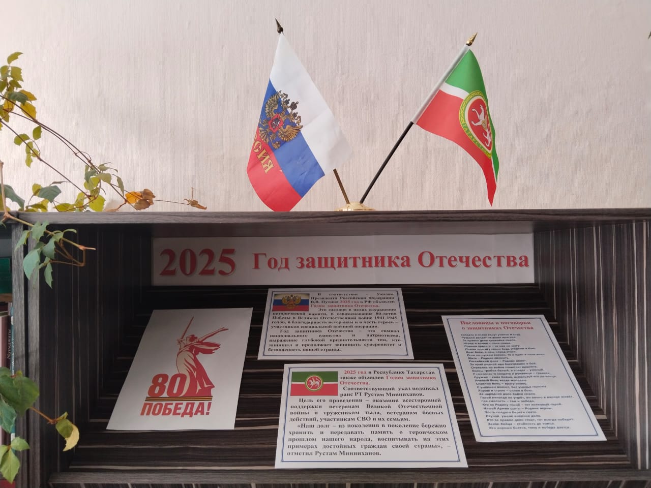 В преддверии великого праздника советник директора по воспитанию совместно с педагогами активно приняли участие в изготовлении поздравительных открыток к празднику Дню защитника отечества. Также в школьной библиотеке была организована выставка, посвященная 80-летию победы. Учащиеся школы приняли участие в акции « Поздравь защитника» и с удовольствием присоединились к поздравлениям мужчин работающих в школе.