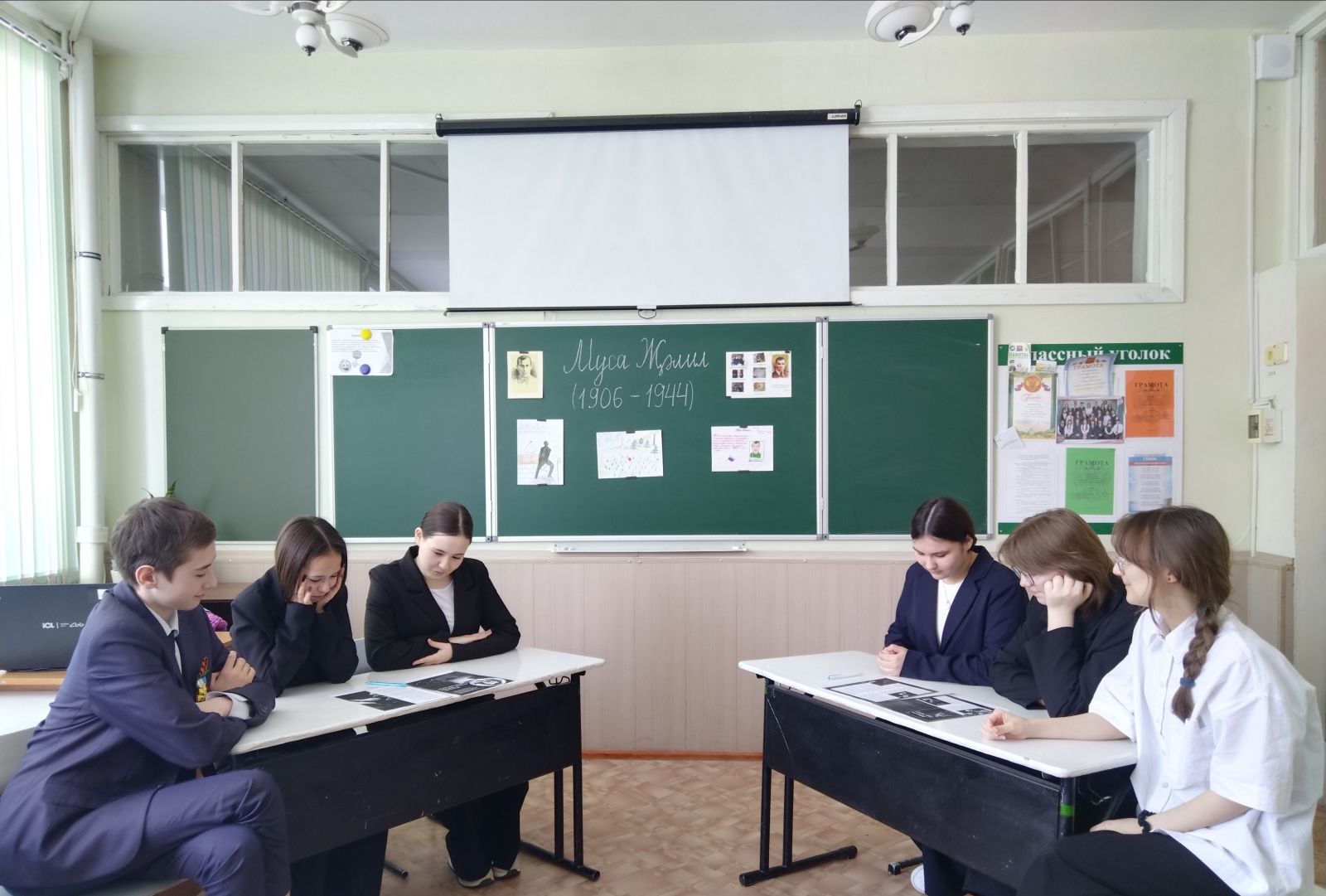 Учащиеся 8Б класса (изучающие родной татарский язык) поучаствовали в викторине, посвященной герою-поэту татарского народа Муса Джалилю. Показали свои отличные знания о семье, жизни и творчестве поэта. С глубоким волнением рассказывали о военных годах, времени проведенном в плену, читали предсмертные строки Мусы Джалиля, которые звучат как завещание для будущего поколения.