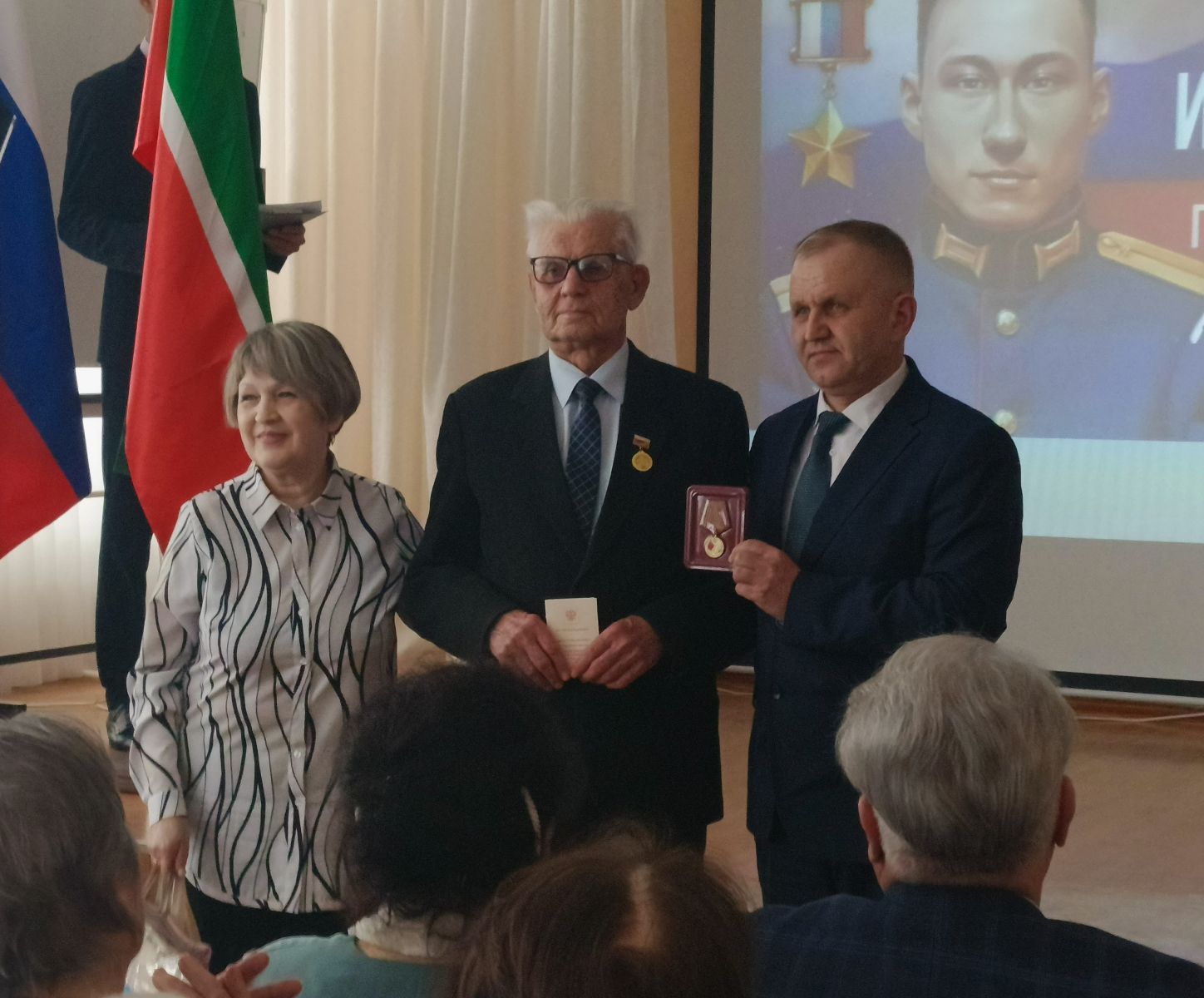 В преддверии празднования Дня Победы в Великой Отечественной войне Санатуллин Вагиз Самиуллович и Сосункевич Марина Николаевна вручили юбилейную медаль Степанову Николаю Николаевичу.