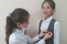 Согласно традиции, символ уважения к исторической памяти, в школе запустили акцию "Георгиевская ленточка".