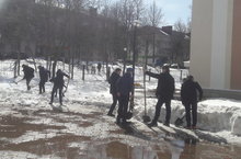 В рамках проведения экологического двухмесячника по отчистке территории учащиеся школы приняли активное участие в муниципальной акции "Эковесна - 2018". Ребята разбрасывали снег на территории школы.