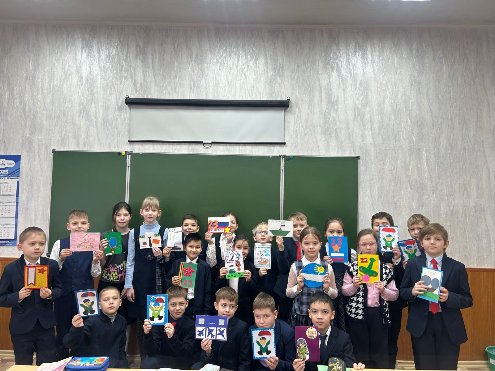 Советник директора по воспитанию совместно с классными руководителями провели тематические классные часы. Также советником и активом Движения первых с учащимися был проведен мастер класс «Открытка Защитнику Отечества».