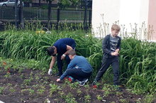 В разгаре лета учащиеся 7Б класса (кл. руководительЧальцева Т.А.) вышли на отработку по благоустройству территории школы. Работа кипит. Занимаются прополкой цветников, уборкой прилегающей территории от мусора.