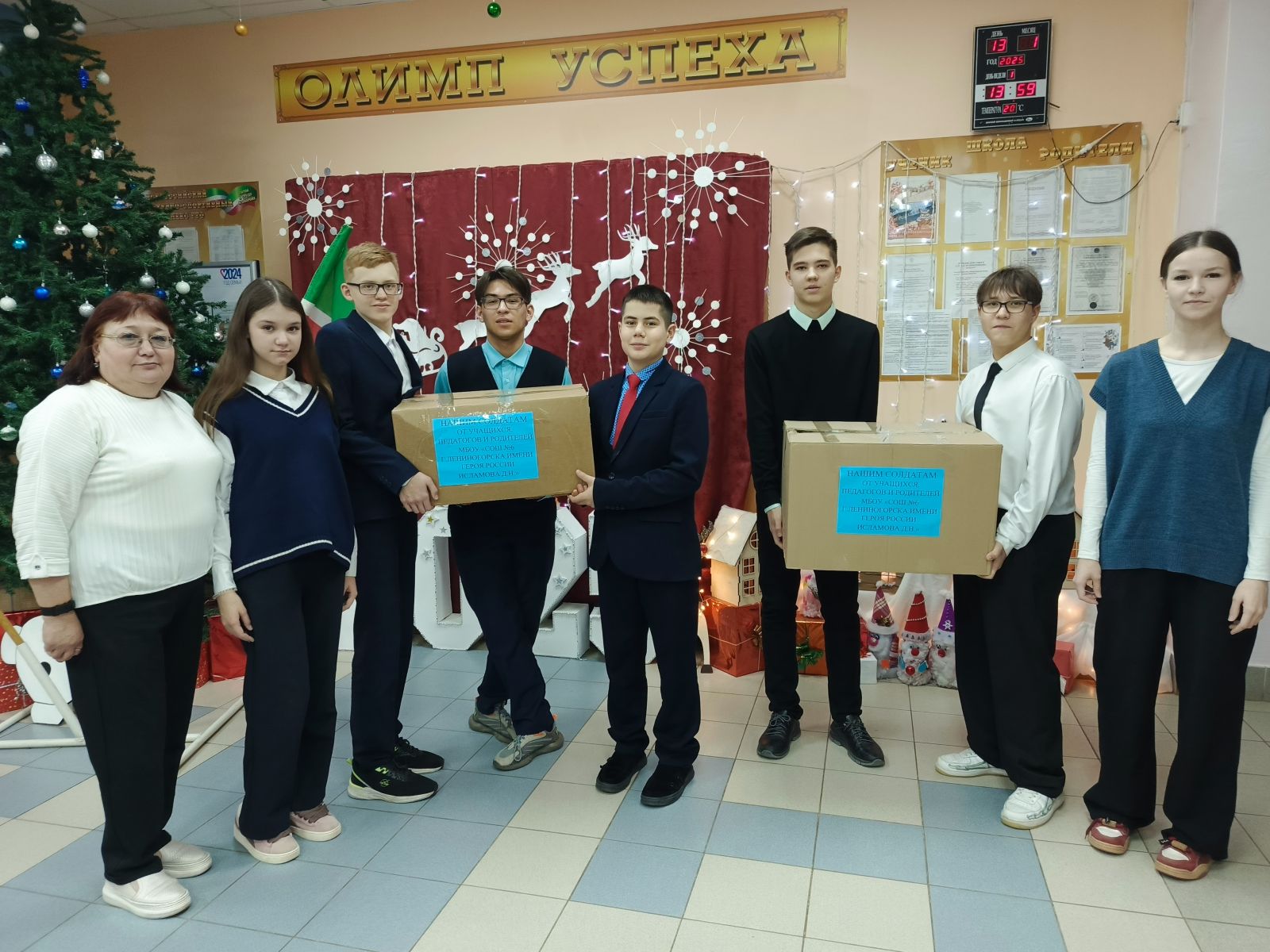 В рамках мероприятий, посвященных 80-летию Великой Победы, учащиеся нашей школы, родители, педагогический коллектив приняли участие в сборе гуманитарной помощи солдатам СВО. Все собранное было доставлено в Лениногорское отделение «Единая Россия».