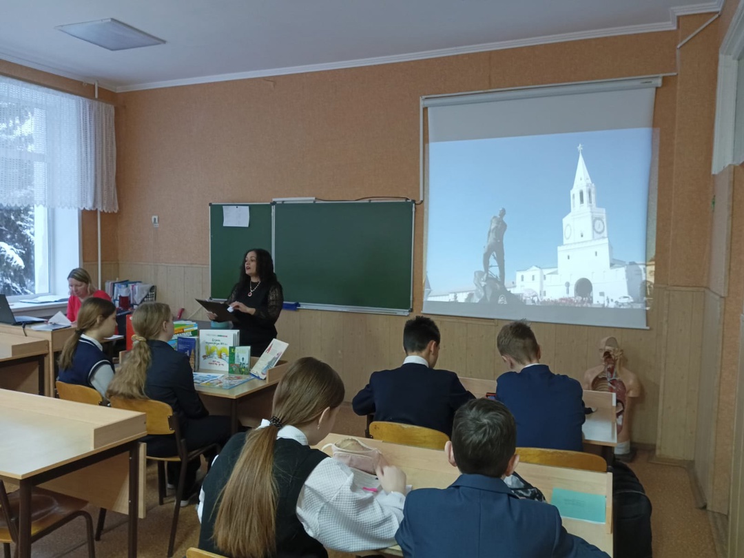 20 января сотрудниками детской библиотеки в 7 "Б"классе был проведён классный час на тему "Этот древний загадочный Казанский Кремль".Занятие прошло увлекательно и познавательно.
