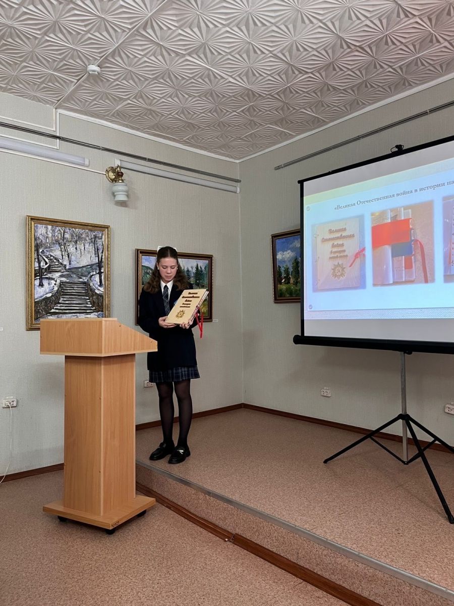 29 ноября ученицы 8 «Б» класса Плешакова Карина и Стенькина Ева приняли участие в ежегодном Муниципальном конкурсе поисково-исследовательских работ «Экспонаты рассказывают: семейная память», организованного Лениногорским краеведческим музеем