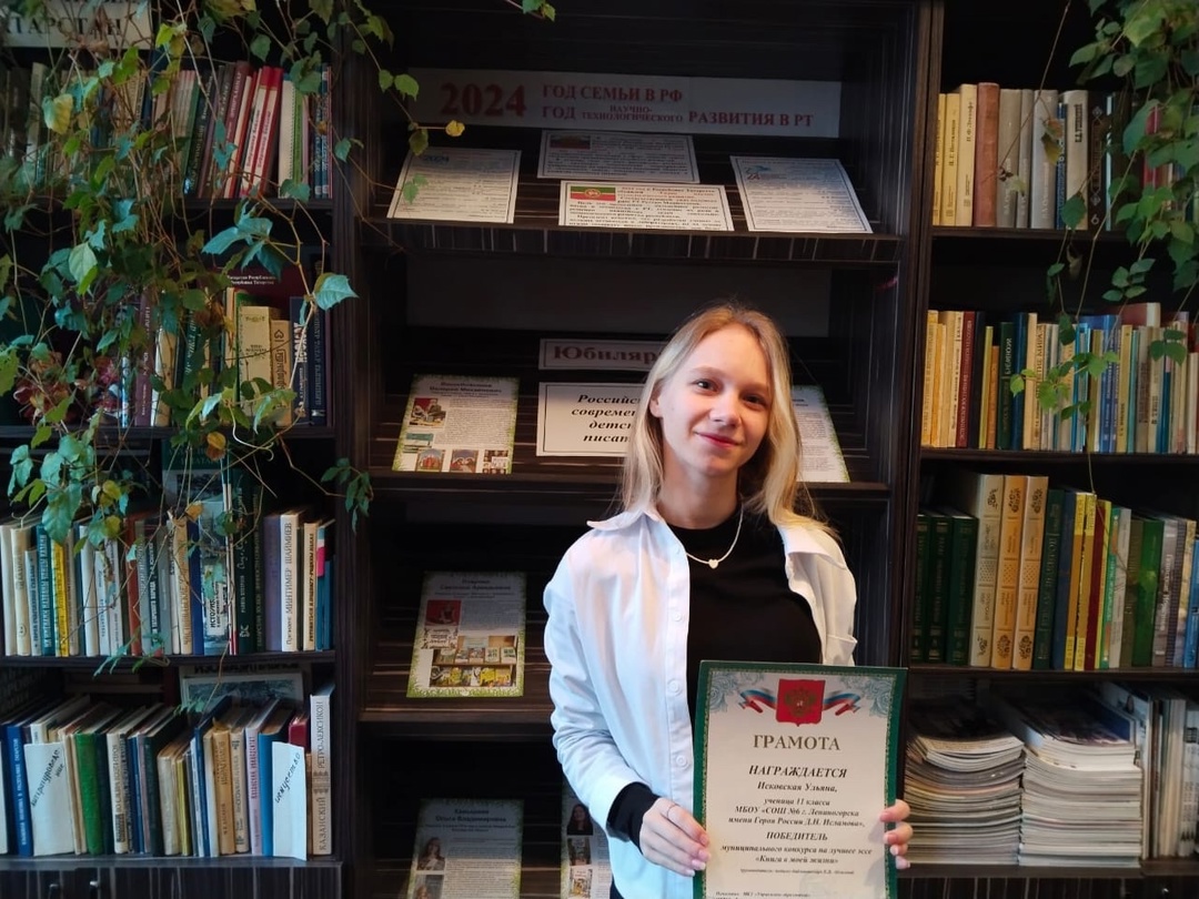 Поздравляем Исковскую Ульяну, ученицу 11 Б класса, победителя муниципального конкурса на лучшее эссе "Книга в моей жизни" (руководитель: педагог-библиотекарь Е.В. Абзалова). Желаем дальнейших творческих успехов!