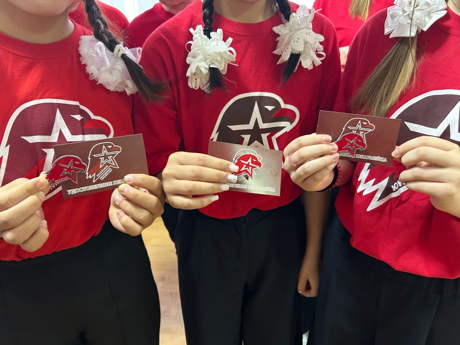 Каждый новоиспечённый юнармеец получил удостоверение юнармейского движения и значок.