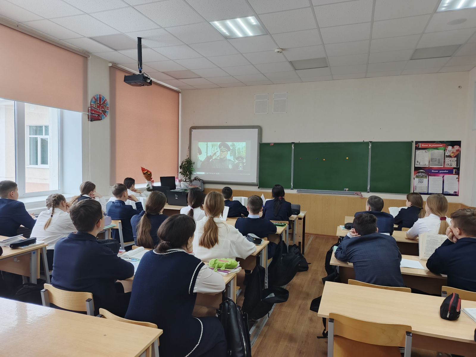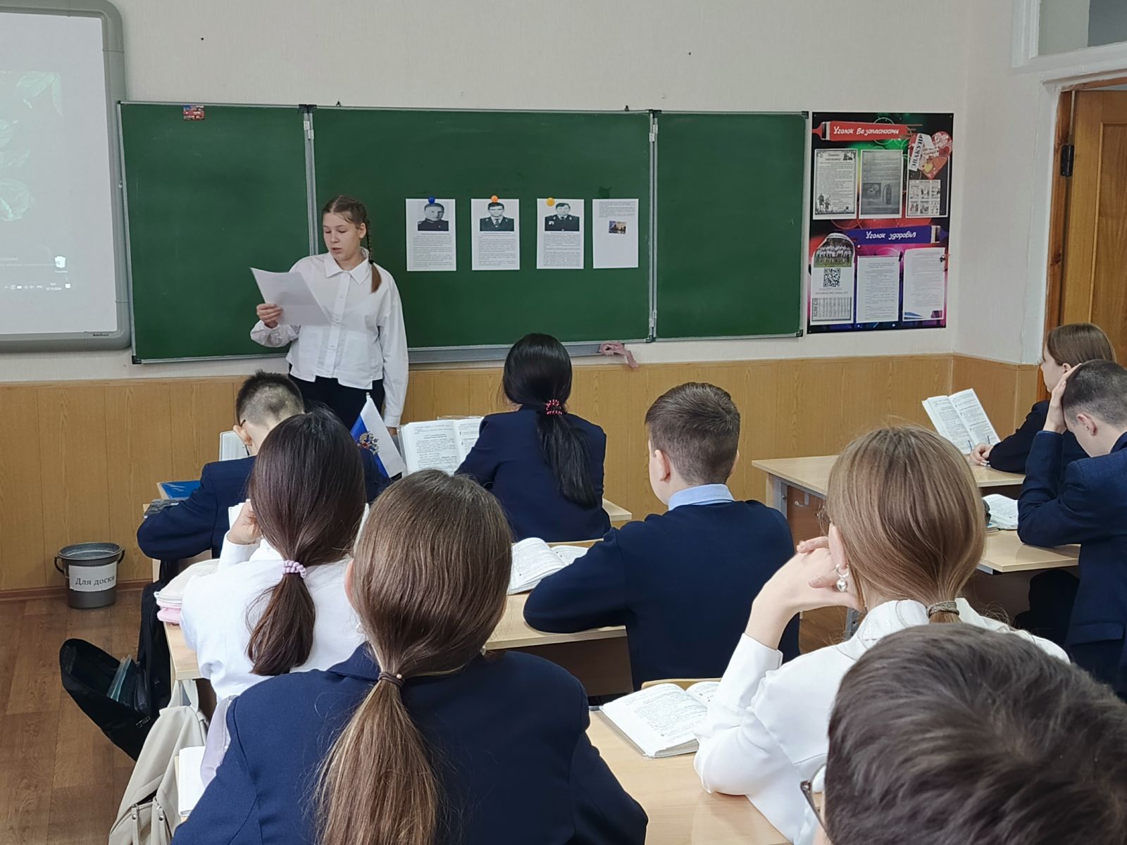 Советник директора познакомила ребят героями нашего города, изучив автобиографию. Далее провела тематическую беседу с просмотром видеофильма.