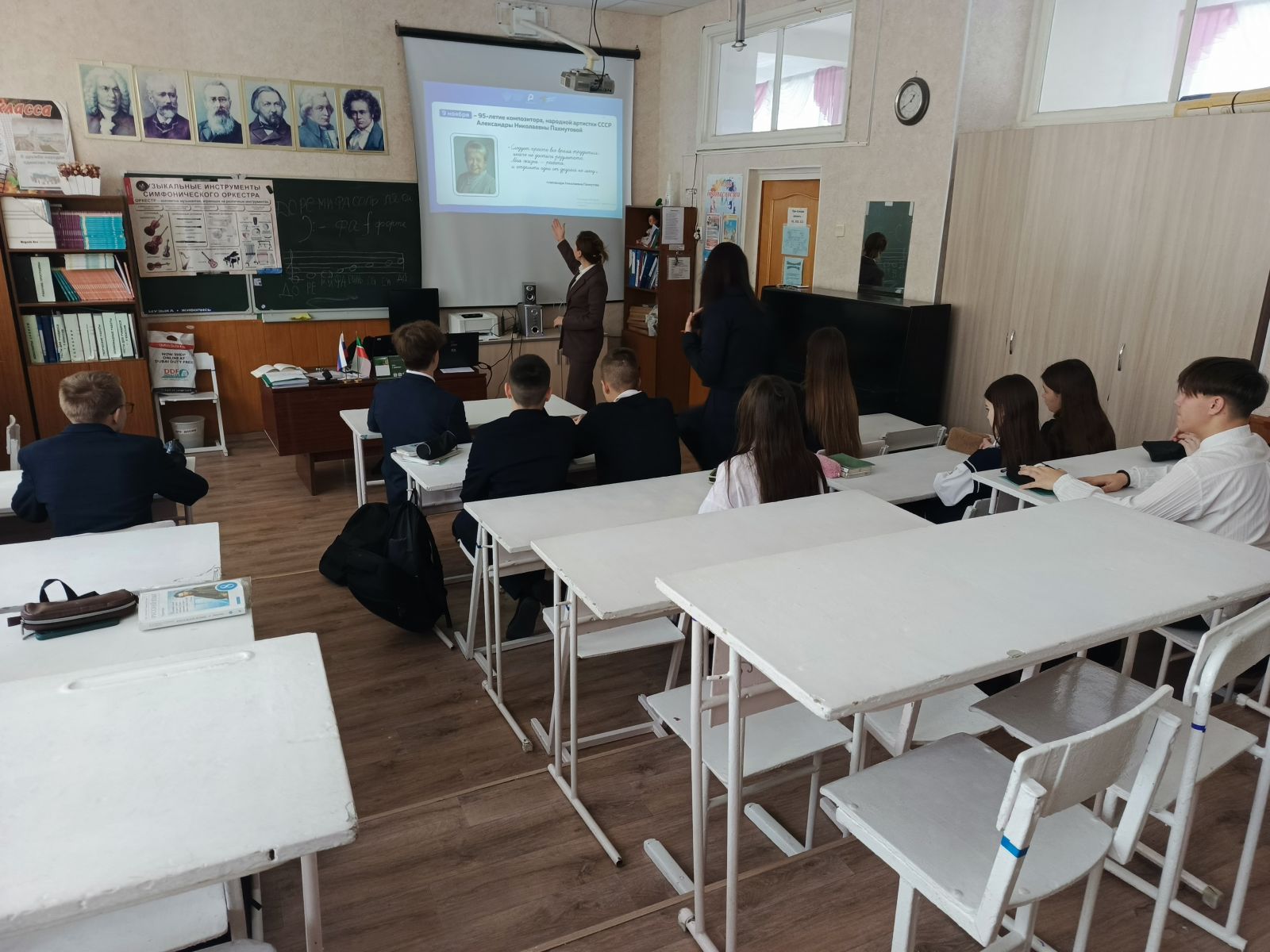 Советник директора по воспитанию познакомила ребят с великим музыкантом, ее биографией и достижениями. Далее проиграли игру «Угадай мелодию».