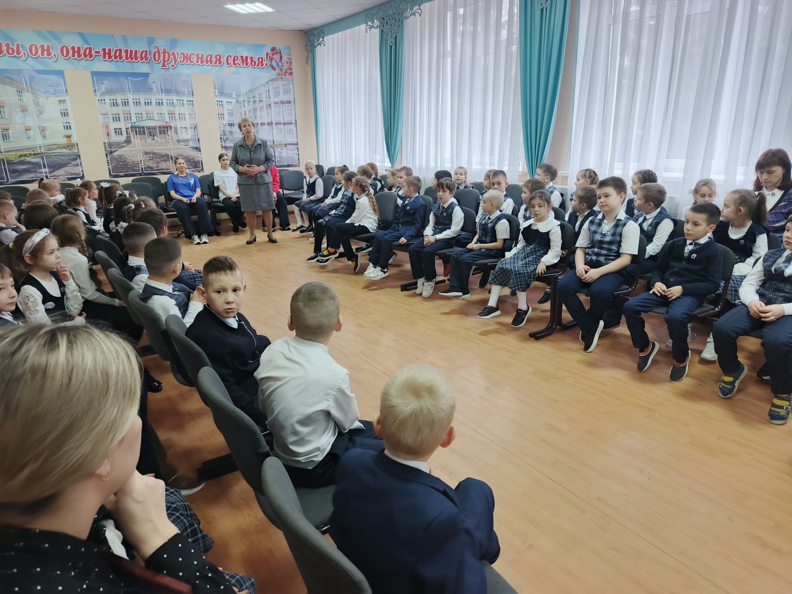 В школе прошла церемония посвящения обучающихся начальных классов в Орлята России, которая для всех её участников стала знаковым событием. В этот праздничный день рядом с Орлятами находятся учителя, старшеклассники-наставники, которые разделяют с ними радость начала новой страницы их жизни!