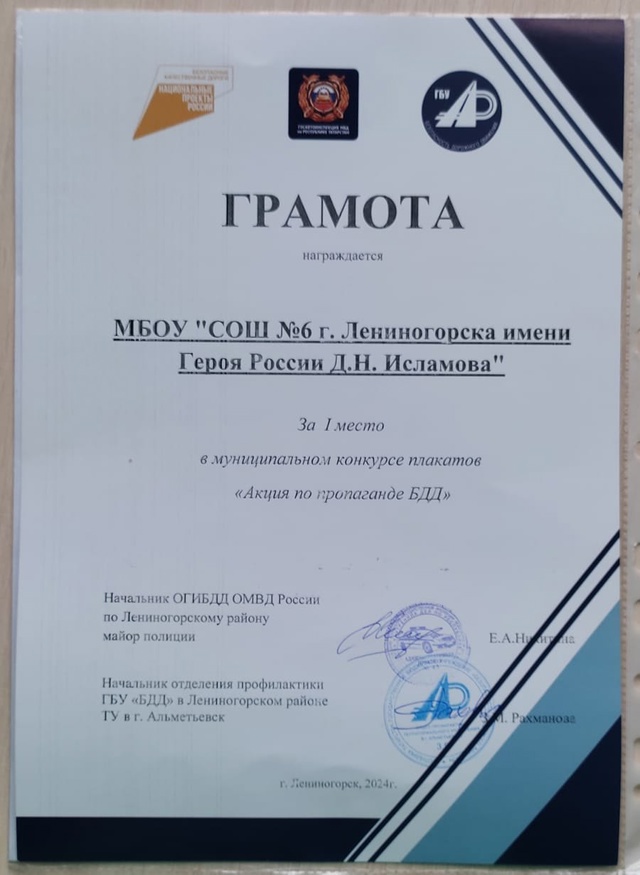 | Короткое название: | МБОУ "СОШ №6 г. Лениногорска имени Героя России Д.Н. Исламова" |
