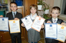 Обучающиеся 2 В класса (кл.рук. Табакова Н.Н.) в ноябре месяце участвовали в дистанционной Всероссийской олимпиаде по окружающему миру "Центра дистанционной сертификации учащихся". И вот, наконец, подведены итоги. Некоторые реябта стали победителями регионального уровня: Реуцкая П. - 1 место, Гирфанов Т. и Кофтун Д. - 2 место. Остальные учащиеся получили сертификаты участников. Поздравляем победителей!!!