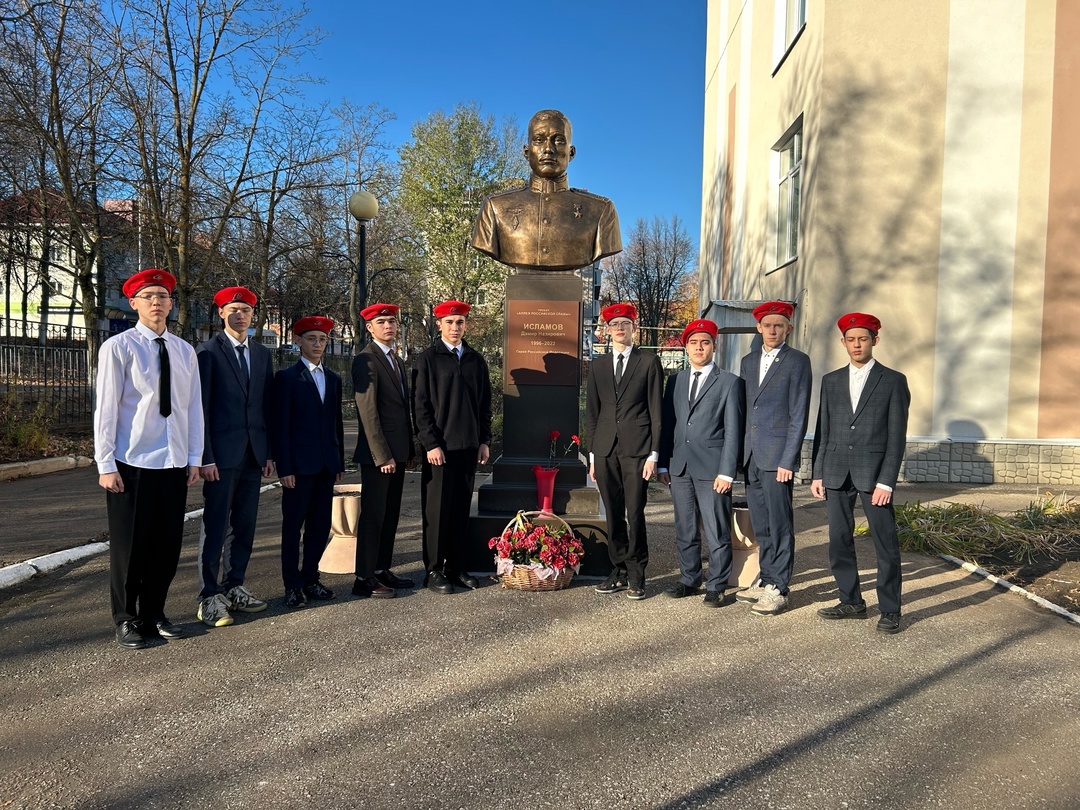 Команда юнармейцев школы возложила цветы к бюсту Героя России.
