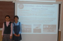 В 4 Г классе был проведен классный час посвященный 82-летию гражданской обороны (Кл. руководитель Думченко О.П.). Ольга Петровна познакомила ребят с историей гражданской обороны РТ, с современным состоянием ГО РТ. В конце была проведена викторина "Стихийные бедствия", где команда "Спасатели" заняли 1 место. 03.10.2014