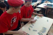 По сигналу, ребята быстро и правильно расположили карточки с воинскими званиями в порядке возрастания и проговорили звания. Победили те, кто сделал это быстро и правильно (Голубев Данила, Кашапов Эмиль, Мифтахутдинов Марат). Молодцы, ребята!