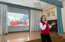 В рамках реализации проекта «Движение первых» перед ребятами выступила Марина Владимировна Марчина, которая рассказала ребятам об истории создания движения, а также о работе центра движения первых, ответила на вопросы ребят.