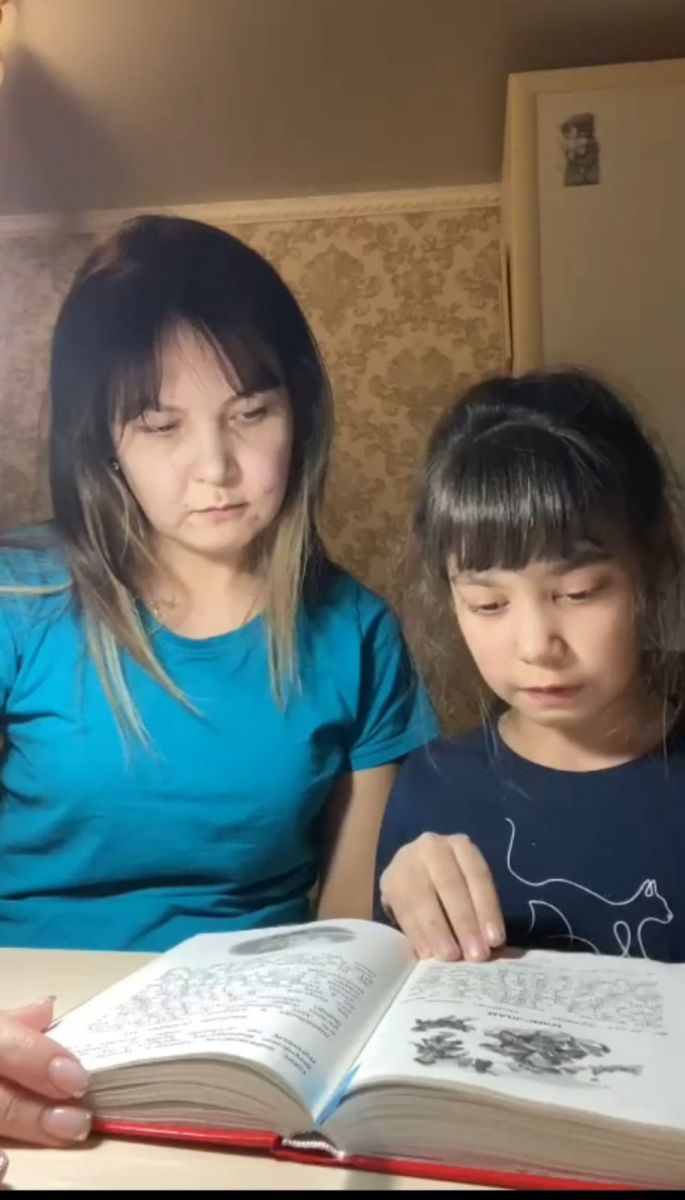 Ученица 4А класса Нургалиева Яна и её мама приняли участие в Республиканской акции " Читаем русскую классику со взрослыми".