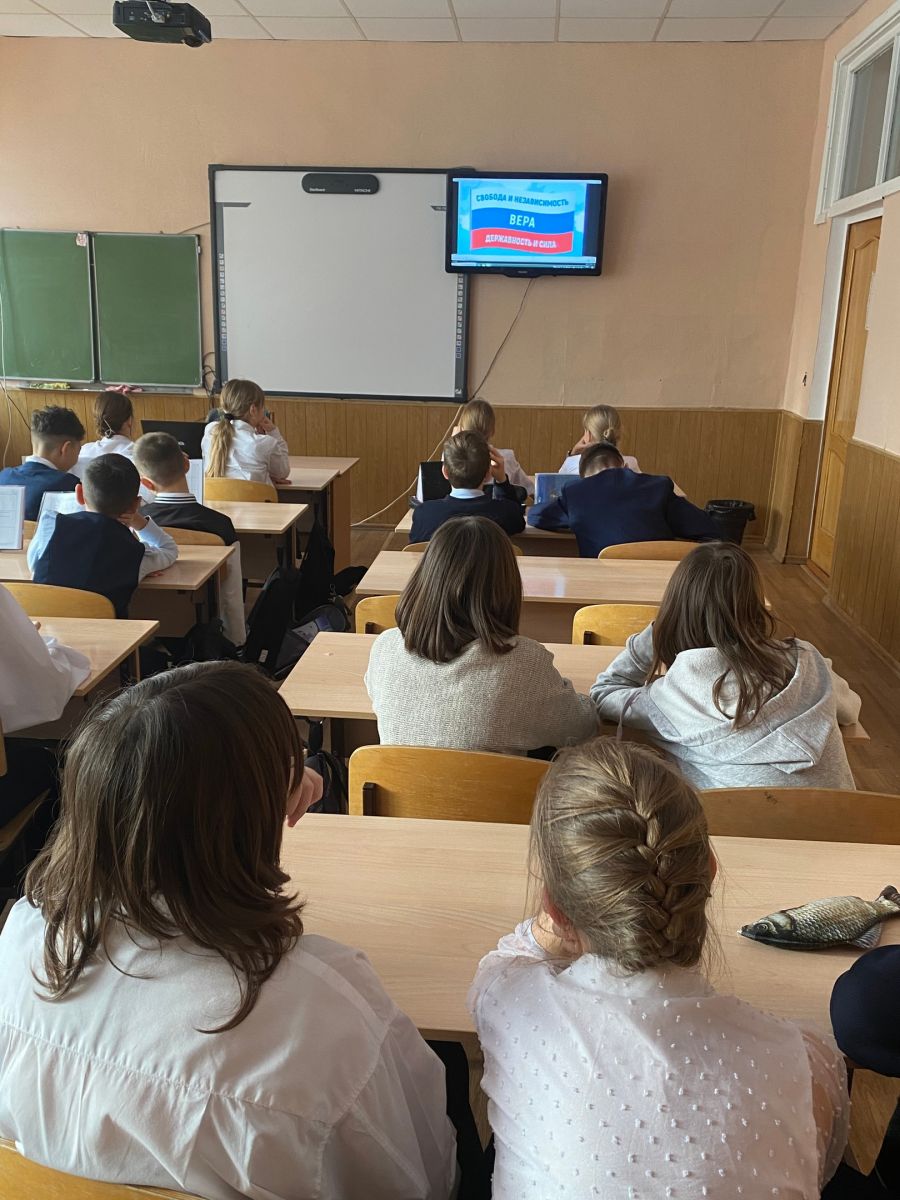 Советником директора по воспитанию, Яковлевой В. В., был проведен интеллектуальный марафон «Государственные символы России» с целью расширения представления обучающихся об истории официальных символов страны (герб, гимн, флаг), отражающих её суверенитет, единство прошлого и настоящего российской государственности.
