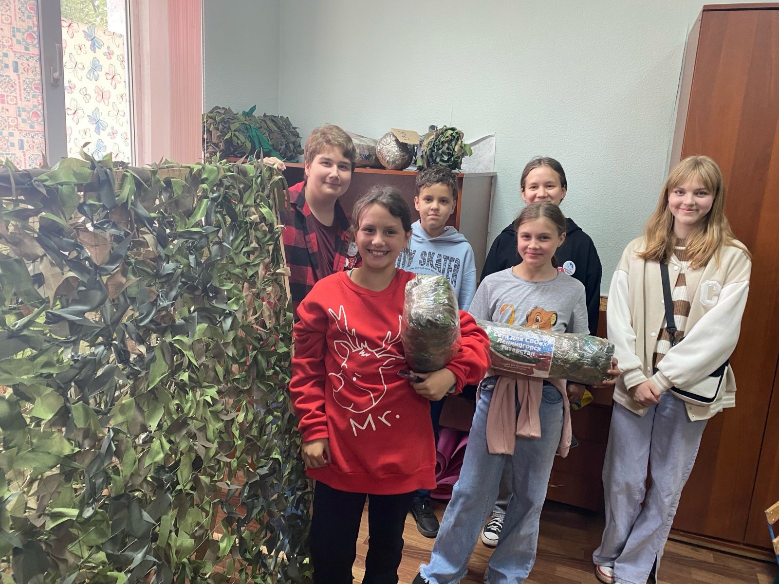 Сегодня ребята посетили Музей боевой славы и поработали в группе «Своих не бросаем», изготавливая маскировочные сети для СВО. А в актовом зале в 12:15 прошла Минута молчания.