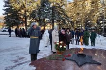 Торжественное возложение цветов началось возле Вечного огня на Аллее двенадцати героев Советского Союза, затем митинг продолжился возле мемориала Героя России Дамира Исламова, который погиб о время специальной военной операции на Украине.
