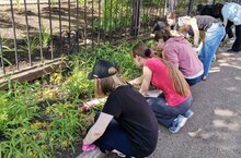 С 3 июня начал свою работу лагерь труда и отдыха. Члены трудового лагеря благоустраивают территорию школы: убирают мусор, рыхлят клумбы, сажают цветы.