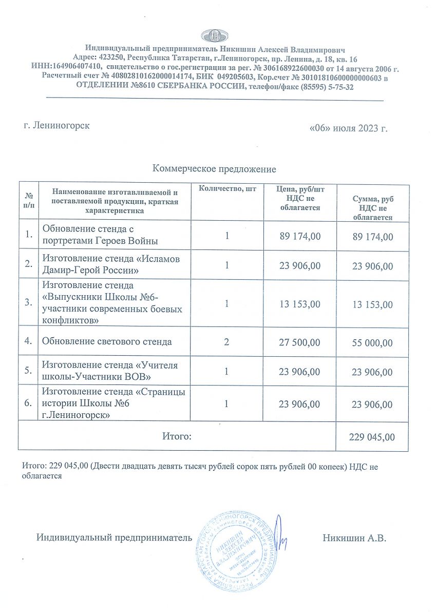 коммерческое предложение Исх. № 342 от 04.07.2023 г.