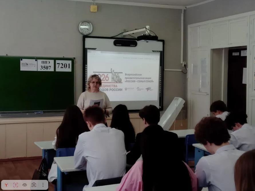 Диктант «Россия – семья семей»: пишем вместе со всей страной! 18 марта ученики нашей школы приняли участие во Всероссийской просветительской акции «Россия – семья семей». В этом году организаторы подготовили особый формат — диктант, полностью состоящий из цитат Президента России Владимира Путина о семье и семейных ценностях . Акция приурочена ко Дню воссоединения Крыма с Россией и призвана напомнить: Россия — это одна большая семья, где каждый народ и каждый человек важны и ценны . Ребята не только проверили свою грамотность, но и прикоснулись к важным мыслям о том, что «подлинные семейные ценности для нас, для России, ее граждан остаются непреложными» .