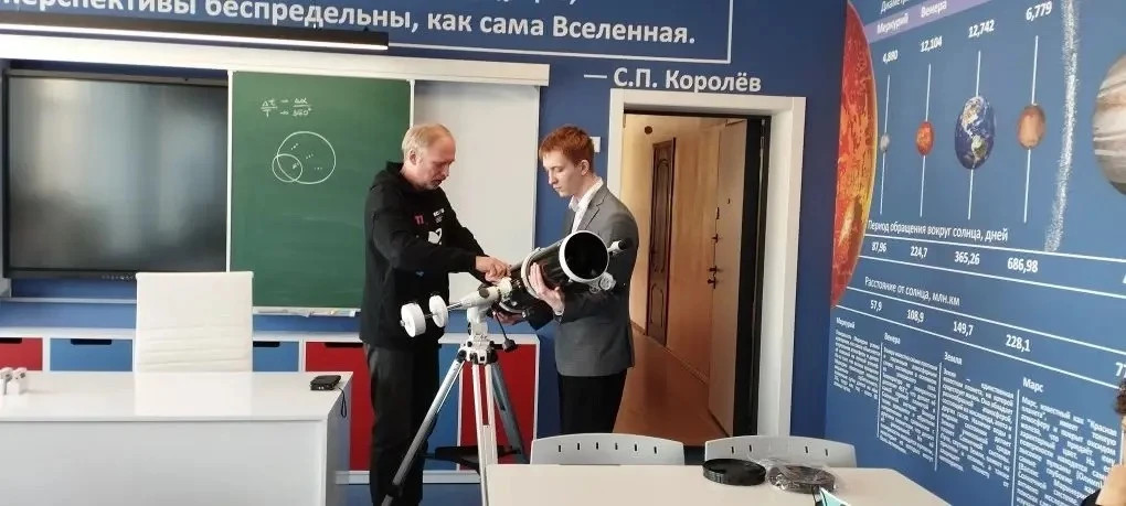 14 марта кружок астрономии в школе № 7 в очередной раз встретил гостей в новом кабинете астрономии. Помимо учащихся школ города на занятия приехали интересующиеся этой наукой ребята школы №6 города Бугульмы. Занятия провёл преподаватель кафедры астрономии, доцент физико - математических наук института физики Казанского Федерального университета Жучков Роман Яковлевич. В ходе занятия ребята под руководством Романа Яковлевича провели астрономические наблюдения на местности с помощью телескопа - рефлектора, наблюдая тёмные пятна на Солнце, дрожание атмосферы. Все наблюдения проводили через солнечный светофильтр. Роман Яковлевич объяснил как работать с телескопом, что можно рассмотреть в телескоп и как безопасно наблюдать Солнце. Наблюдения вызвали у ребят бурю эмоций, процесс был увлекательным и интересным. С нетерпением ждём новых занятий!