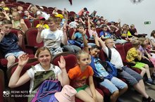 Сегодня наш лагерь ходил в кино. Перед просмотром фильма Рахманова З. М. провела с ребятами беседу о правилах дорожного движения. Напомнила ребятам о правилах велосипедиста и подарила памятки. Ребята с удовольствием посмотрели мультфильм «100% волк».