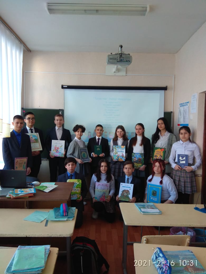 В рамках Года родных языков и народного единства учитель татарского языка и литературы Сафиуллина М.А. 20 февраля в 6А,Б,В классах провела конкурс чтецов. Учащиеся выразительно читали стихотворения выдающихся поэтов Габдуллы Тукая, Мусы Джалиля, Ш.Галиева, Р.Миңнуллина, А.Исхака и др. Учитель рассказала об актуальности, значимости знания языков и конкретно знания татарского языка. Мероприятие воспитывает любовь и интерес к изучаемому языку, родному краю; уважение к народам, населяющим его, а также воспитывает желание говорить и изучать родной язык.Туган телләр һәм халыклар бердәмлеге елы кысаларында 20 нче февраль көнне татар теле һәм әдәбияты укытучысы Сафиуллина М.Ә. 6А,Б,В сыйныфларында шигырь укучылар бәйгесе үткәрде. Укучылар күренекле шагыйрьләребез Габдулла Тукай, Муса Җәлил, Ш.Галиев, Р.Миңнуллин, Ә.Исхак һ.б. шигырьләрен тыңлаучының күңеленә барып җитәрлек итеп, сәнгатьле сөйләделәр. Укытучы телләр белүнең , татар телен өйрәнүнең мөһимлеге турында сөйләде. Үткәрелгән чара укучыларда туган телебезгә мәхәббәт, кызыксынучанлык, туган ягыбызга, анда яшәүче барлык халыкларга карата ихтирамлы булу хисе тәрбияли, телебезне өйрәнүгә ихтыяҗ, аралаша белү теләге уята.