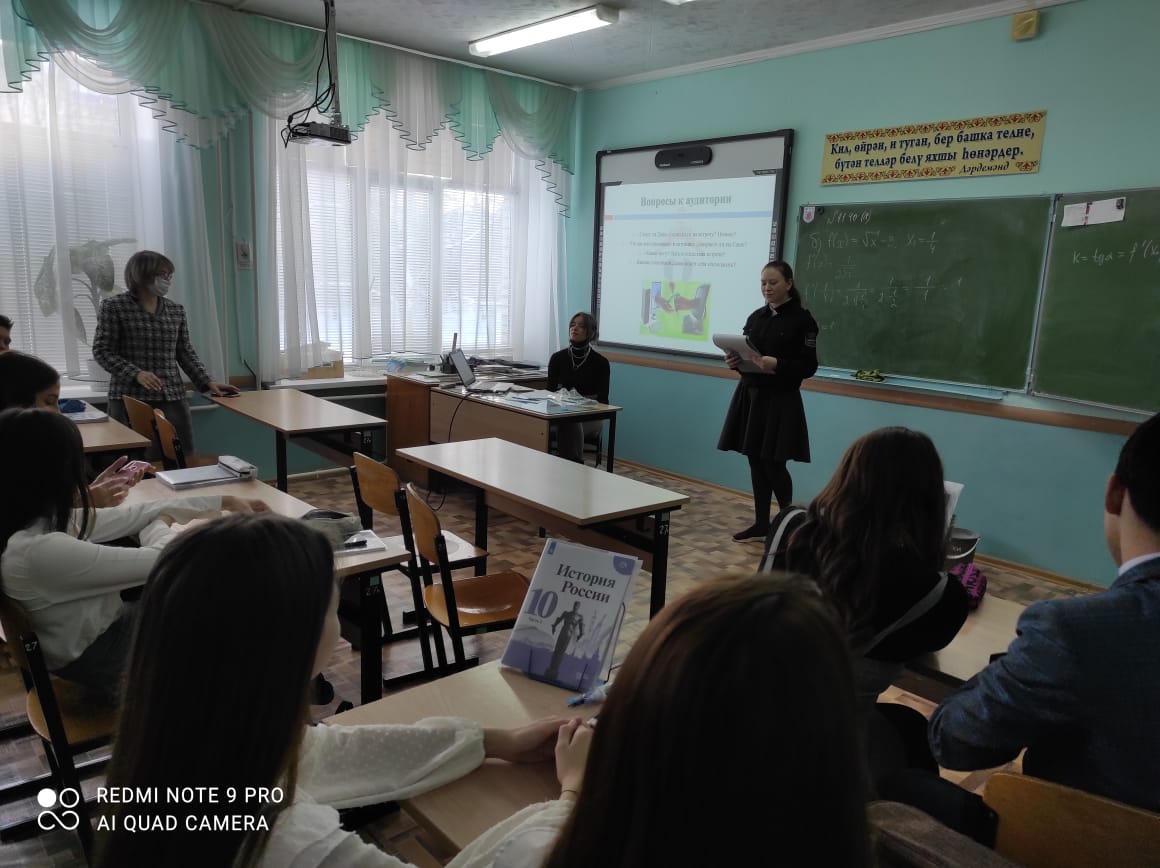 Парламентский урок, посвященный Году родных языков и народного единства, на тему «Татарстан – наш общий дом. Единство народов, культурное и языковое многообразие как уникальное богатство республики» был проведен 19 февраля с учащимися 9 класса под руководством учителя истории и обществознания Кадыровой Л.Н. Урок проводится ежегодно в целях правового просвещения, воспитания активной гражданской позиции и формирования патриотизма, углубления знаний учащихся о государственном устройстве страны. Обучающиеся обсудили вопросы образования ТАССР, вклад Республики Татарстан в Победу в Великой Отечественной войне, современные достижения Республики Татарстан.