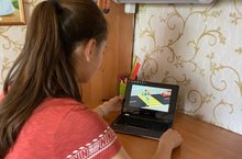 Учащиеся школы дистанционно изучают видеоуроки дорожной безопасности.