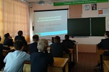В рамках "Всероссийской добровольной просветительской интернет - акции "Неделя безопасности. Безопасность детей в современном мире" с учащимися 8-х классов была проведена беседа о правилах безопасного поведения в повседневной жизни. С ребятами обсуждались вопросы связанные с формированием установок на согласованные действия при попадании в опасные ситуации, отрабатывались умения оказывать само- и взаимопомощь.