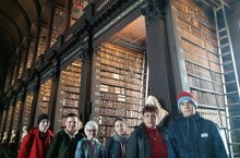 26 марта после занятий группа учащихся, находящихся в Ирландии, посетила Тринити Колледж и его знаменитую библиотеку, где находится Келлская книга. Келлская книга - один из старейших экземпляров Библии. В старой библиотеке находится небольшая экспозиция, посвященная этой книге - плакаты, рассказывающие о книге и отдельные иллюстрации. Сама книга - "четырехтомник", лежащий в витрине. На 2 этаже мы попадаем в типичную средневековую библиотеку со стрельчатыми окнами и огромными стеллажами с фолиантами. Библиотека пропитана запахом старины.