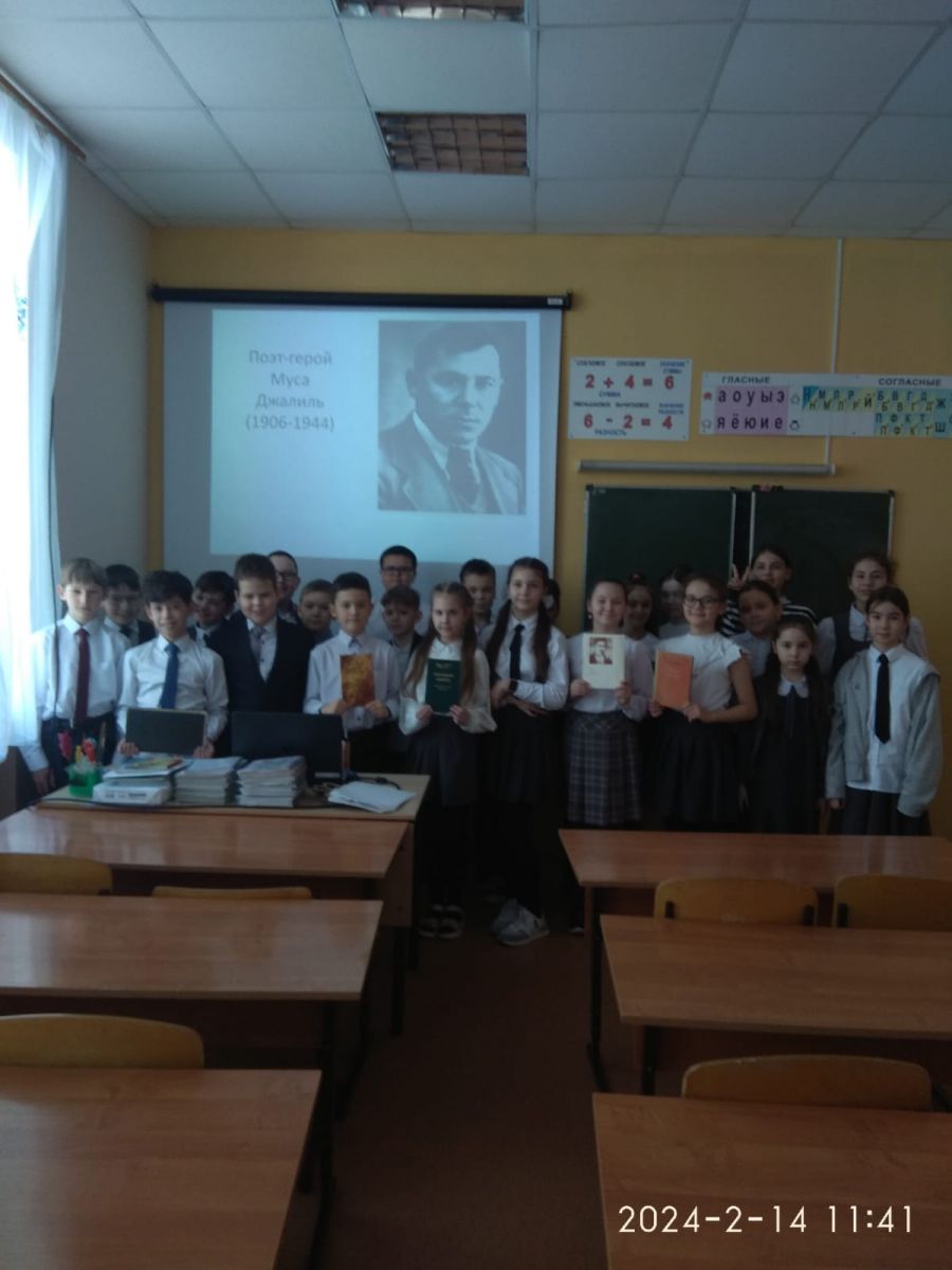 15 февраля отмечается 118-я годовщина со дня рождения Мусы Джалиля, одного из великих поэтов татарского народа. Учащиеся 6-х классов на уроке родной литературы познакомились с жизнью и творчеством поэта, просмотрели фильм о малоизвестных фактах из его жизни , а также о памятных местах, связанных с именем героя. На уроке прозвучали стихи Мусы Джалиля из цикла стихотворений «Моабитская тетрадь», за которую ему была посмертно присуждена Ленинская премия. Когда-то поэт сказал: «Цель жизни в этом и заключается: жить так, чтобы и после смерти не умирать». Его стихи живы и будут жить вечно.